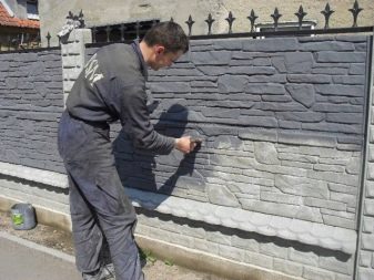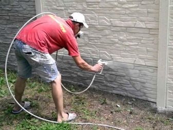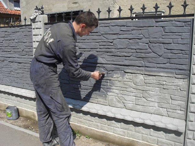 Nach dem Bau eines Betonzauns können Sie selbst malen. Malerei erfüllt nicht nur dekorative und ästhetische Funktion, sondern schützt auch vor äußeren Nebenwirkungen.