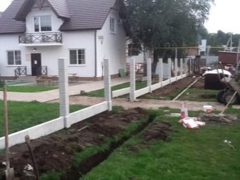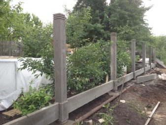 Modulare Abschnitte von ähnlichen Fertigteilzäunen können in einer Reihe mit niedrigen Betonstützen installiert werden. Dann wird die Höhe des Zaunes 0,5-1 m betragen, das Fundament für sie muss sehr flach sein.