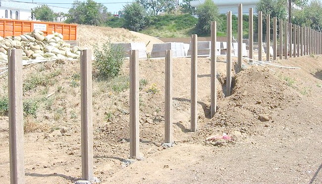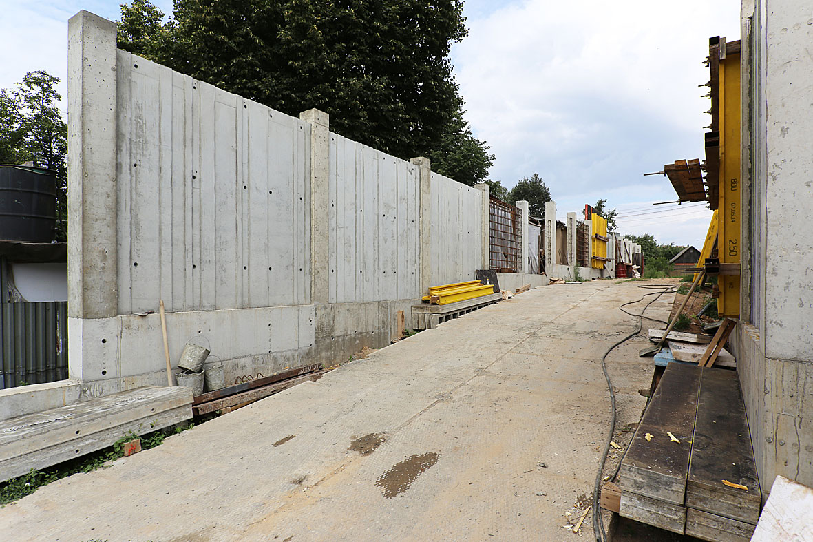 - Der Zaun aus massivem Beton schützt die Baustelle vor dem illegalen Eintritt.