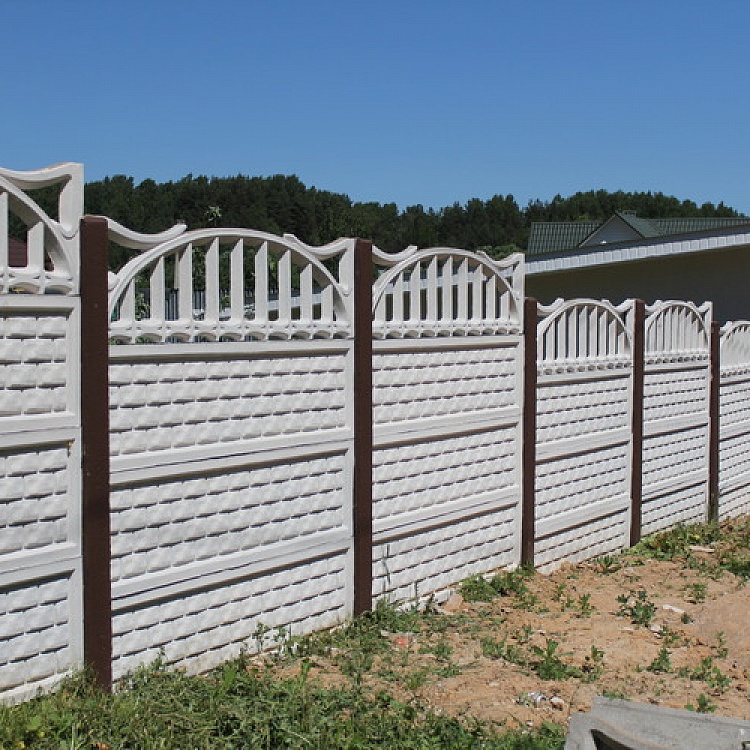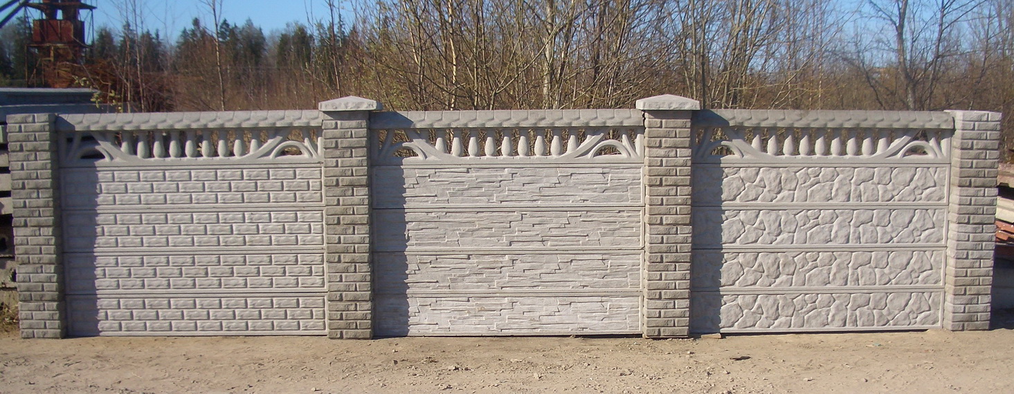- Fest "Betonhandel" fertigt hochwertige Betonzäune nach europäischen Technologien.Sie können einseitige Abschnitte und dekorative doppelseitige Verkleidungen finden.