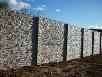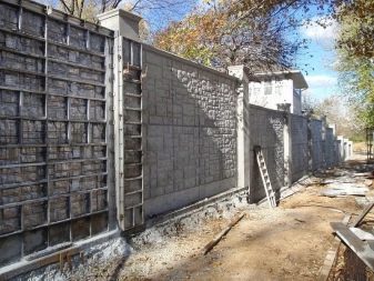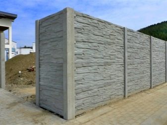 Monolithischer Betonzaun wird in Form von ganzen Platten präsentiert, die eine glatte und geprägte Oberfläche haben können. Die letztere Option wird am meisten für Wohngebiete bevorzugt. Ein solcher Zaun kann durch Betonblöcke dargestellt werden. Äußerlich ähnelt dieser dekorative Zaun einem Mauerwerk, hat aber viele Möglichkeiten der Veredelung.