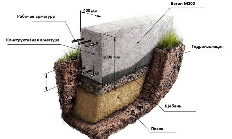 Für das Fundament ist es notwendig, die Grenze zunächst in Form eines Grabens zu markieren. Seine Breite sollte doppelt so groß sein wie die Breite der Platten, die Tiefe kann von 60 bis 90 cm variieren (abhängig von der Art des Bodens). Nachdem der Graben gegraben wurde, sollte er sorgfältig gestampft werden. Zu diesem Zweck werden Schotter, Sand, Dachmaterial und Beton verwendet.