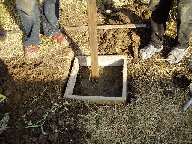 - Führen Sie Gruben unter den Säulen aus. Jedes Loch sollte betoniert werden und eine Verstärkung sollte darin installiert werden.