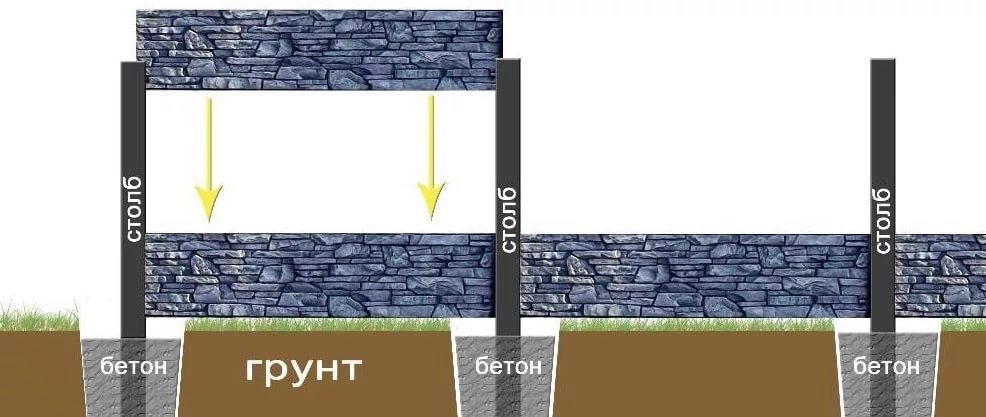 Die Installation des Zauns auf solchen Strukturen ist wie folgt: