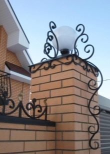 - Beton (Klinker). In verschiedenen Formen gegossen, erschwinglich, einfach an die Lösung zu befestigen. Haben Sie ein erhebliches Gewicht (bis zu 20 kg), was den Transport erschwert. Sie sind nicht geeignet für die Montage auf Schmiede-, Holz- und Metallzäunen, aber sie sind perfekt mit Beton, Ziegel und Stein kombiniert.