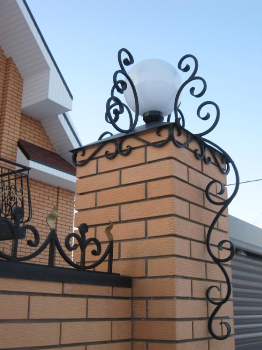 Modelle mit eingebauten Leuchten sind sehr beliebt, sie erlauben es, das Problem der Beleuchtung des Umfangs des Geländes zu lösen und einen schönen äußeren Eindruck zu erzeugen.