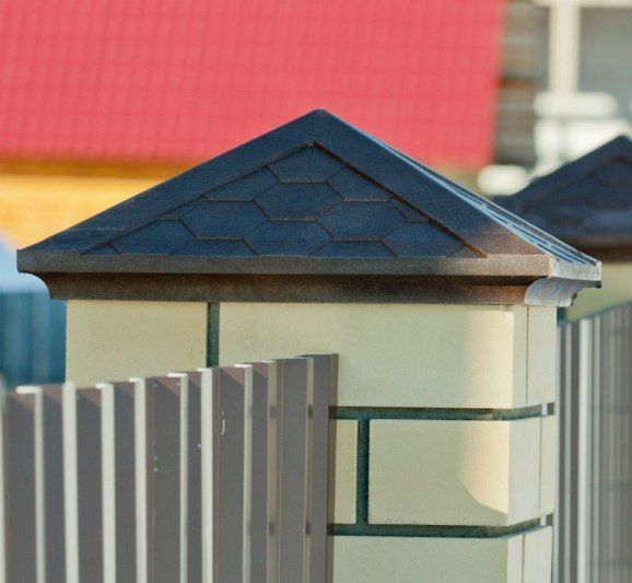 Es ist leichter, schneller und billiger Schutz zu installieren als eine komplette Überholung des Zauns: die zerstörten Spitzen der Pfeiler zu zerlegen, neu zu verlegen, die Risse zu verputzen.
