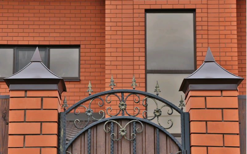 - Spitzspitzen an den Spitzen der Säulen werden ein Hindernis für das Eindringen in das Territorium von Eindringlingen von Eigenheimbesitzern sein.