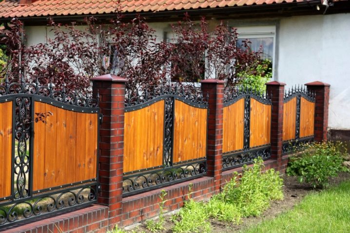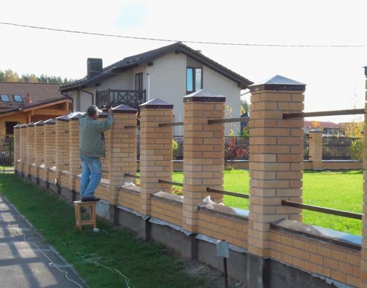 Ein zuverlässiges Fundament, starke Pfeiler, schöne dauerhafte Paneele - das sind die Hauptelemente des modernen Zauns. Es gibt auch Schutzelemente, die das Zusammenfallen von Stützen nicht zulassen.