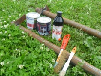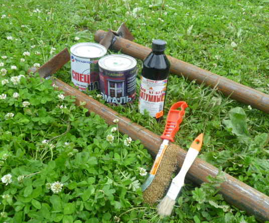 Der innere Hohlraum des Rohrs ist schwierig zu reinigen, und die Außenseite wird durch Rost mit einer Eisenbürste entfernt, die mit einer Mühle oder einer Mühle behandelt wird. Falls erforderlich, entfetten und eine Grundierung für das Metall, z. B. GF-021, auftragen. Nach dem Trocknen der Grundierung wird das Rohr in zwei Schichten gestrichen.