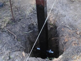 - Wenn der Boden mit der Methode von botovaniya angehoben wird.Ein kleines Sandkissen wird mit Hilfe einer Handbohrmaschine in das Bohrloch eingegossen und gestampft. Setzen Sie die Säule vertikal und in kleinen Portionen füllen Sie das Loch mit Schutt mit Sand. Jede Portion stampfte und goss Wasser. Der letzte 20 cm Pfosten wird mit Beton gegossen.