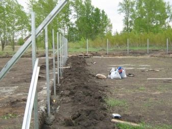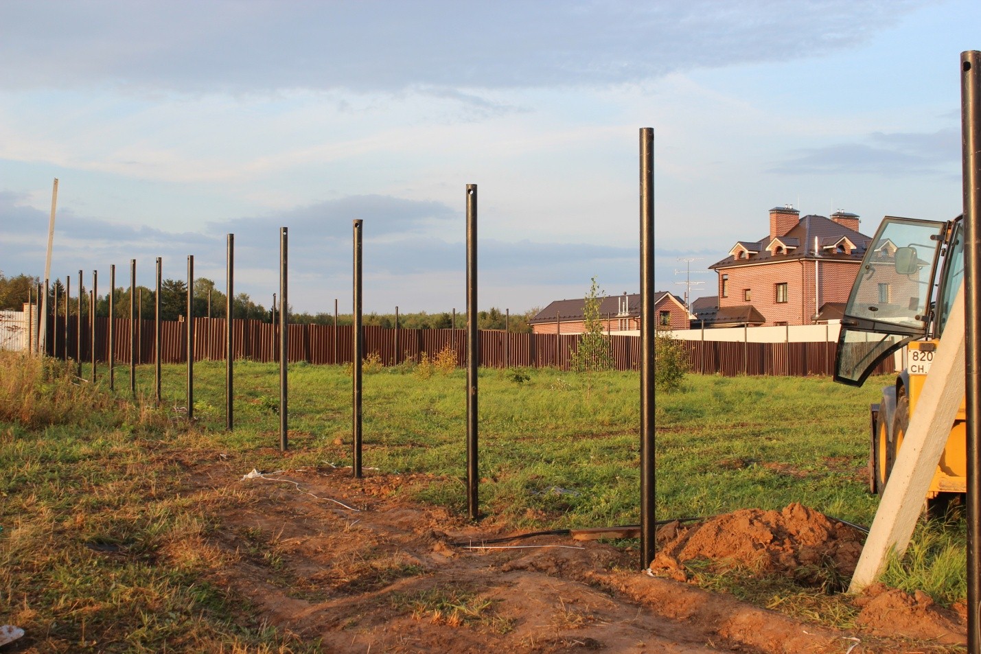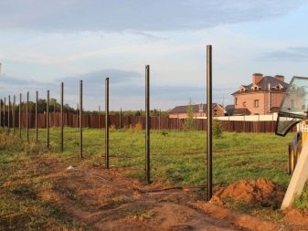 Die Wahl der Metallpfeiler hängt auch von der Art der Installation ab und hängt wiederum vom Zustand des Bodens ab. Für einen leichten Zaun genügt es, eine Säule in den Boden zu treiben, wenn sie dicht ist (grau, Lehm, Sand). Zwei Personen sind an der Arbeit beteiligt - einer fährt hinein und der andere hält die Stange und überprüft sie auf der Ebene in zwei vertikalen Ebenen.