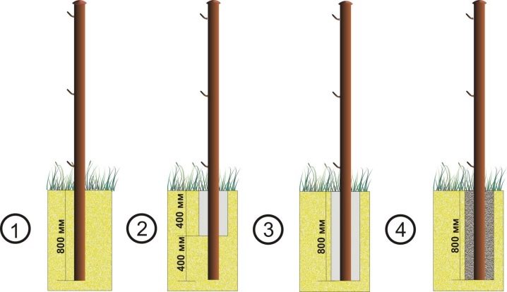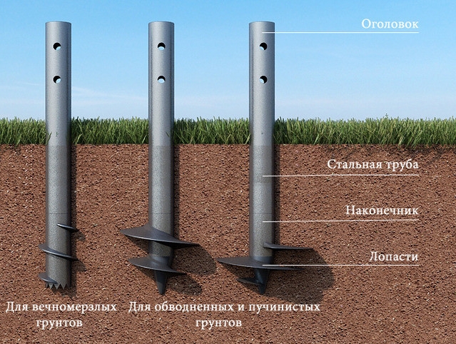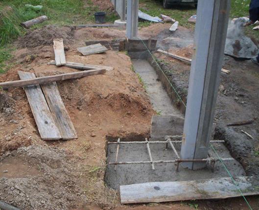 Die Länge der in den Boden ragenden Pfeiler muss mindestens ein Drittel der Gesamtlänge des Pfeilers betragen. Die Tiefe des Betonierens wird auf die Tiefe des Einfrierens des Bodens eingestellt.