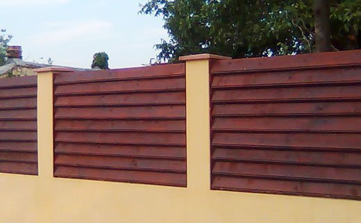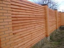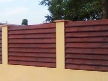 Holzkonstruktionen werden aus normalen Brettern hergestellt.Um den Preis erschwinglicher zu machen, verwenden die Pflanzen rohe Konstruktionsbretter, aber das Aussehen dieses Zaunes wird sich nicht in der Ästhetik unterscheiden. Dieses Material erfordert besondere Sorgfalt und sorgfältige Verarbeitung. Der Baum ist anfällig für Schimmel und Schimmel. Um ihre Lebensdauer durch spezielle Formulierungen zu verlängern.