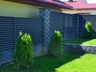 Blinds Zäune gewinnen jetzt schnell an Popularität und verdrängen Zäune aus Ziegeln, Stein und anderen Materialien in den Hintergrund. Sie können Metall oder Holz sein. Sie haben erfolgreich zwei Funktionen kombiniert: