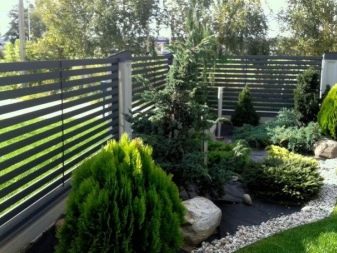 Einzelne Merkmale haben Zäune verschiedener Art. Hohe taube Zäune schließen und schützen das Gebiet zuverlässig vor neugierigen Blicken. Mesh-Modelle lassen Luft und Sonnenlicht auf bemerkenswerte Weise herein, aber mit ihnen eine abgeschiedene Atmosphäre zu schaffen, wird nicht funktionieren. Profis versuchten, die Vorteile von Designs in einem Produkt zu vereinen und die Nachteile zu beseitigen.Als Ergebnis erschien ein Lamellenzaun auf dem Markt.