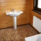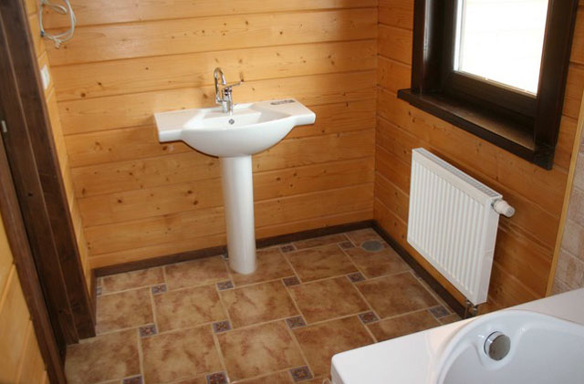 Linoleum hat eine hohe Festigkeit, es ist leicht zu reinigen und sammelt keinen Schmutz auf seiner Oberfläche. Es ist anzumerken, dass diese Art aufgrund des Gehaltes an Leinsamenöl in der Basis zur Klasse der bakteriziden Beschichtungen gehört. Der Vorteil dieser Option ist, dass Die Oberfläche nimmt keinen Schmutz auf und ist leicht zu reinigen. Diese Option eignet sich gut für ein Holzhaus, dessen Innenraum komplett aus natürlichen Materialien besteht.