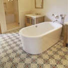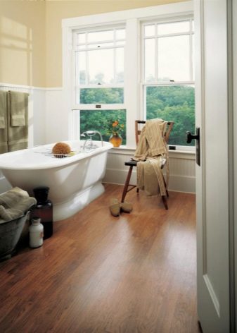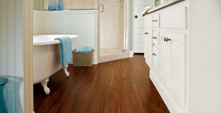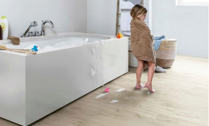 Im Vergleich zum vorherigen Typ können diese Bodenbeläge im Badezimmer verlegt werden. Wenn jedoch die richtige Installationstechnologie nicht befolgt wird, kann das Material seine Betriebseigenschaften verlieren.