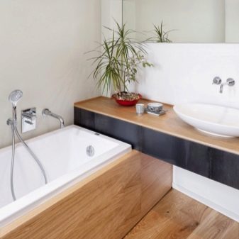 Aber natürliche Abdeckung kann nicht ins Badezimmer gestellt werden. Dies liegt an der Tatsache, dass die Basis leicht durch Feuchtigkeit verrotten kann. Darüber hinaus sind viele Käufer nicht mit den hohen Kosten der Abdeckung zufrieden.