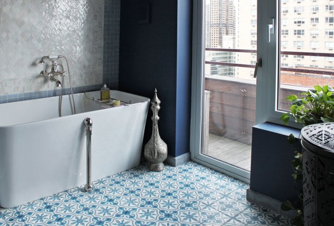Dann müssen Sie beginnen, die Leinwand zu rollen. Bitte beachten Sie, dass das Material nicht an die Wände gehen darf. Zur Befestigung wird empfohlen, Klemmleisten zu verwenden. Es ist erwähnenswert, dass manchmal nicht-feste Beschichtungen verwendet werden, um das Badezimmer zu beenden. In diesem Fall werden alle Teile ausgewählt, damit das Muster übereinstimmt.