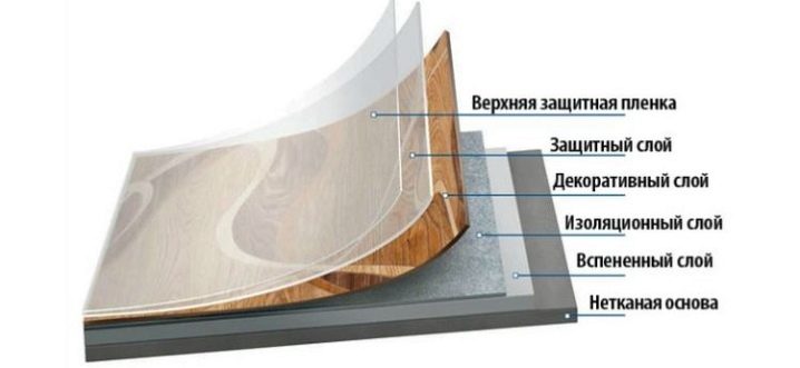 Das Hauptmerkmal fast aller Arten von Linoleum ist eine heterogene Struktur.Das Material basiert auf mehreren Schichten und jede von ihnen hat ihre eigenen spezifischen Funktionen. Meistens wird zur Herstellung des oberen Teils Polyvinylchlorid verwendet. Das Vorhandensein eines solchen Rahmens bietet Verschleißfestigkeit und Wasserbeständigkeit der Beschichtung.