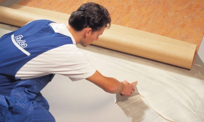 Bitte beachten Sie, dass für die Verlegung von Linoleum keine wasserlöslichen Verbindungen verwendet werden können. Es ist am besten, Chloropren-basierten Klebstoff für diesen Prozess zu wählen.