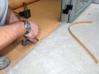 - Schrumpfendes Linoleum im Laufe der Zeit. Wenn das Material in der üblichen Weise verlegt wird, das heißt, ohne Befestigung, treten häufig hässliche Risse an den Verbindungsstellen in der Nähe der Wände oder in der Türöffnung auf. Sie werden dadurch verursacht, dass Linoleum im Laufe der Zeit an Feuchtigkeit verliert, steifer wird und an Volumen verliert. Es ist nicht möglich, den Deckel mit einem Rand zu versehen, daher ist es besser, ihn am Umfang und an den Fugen zu befestigen, damit der Reparaturaufwand nicht so lange wie möglich auftritt.