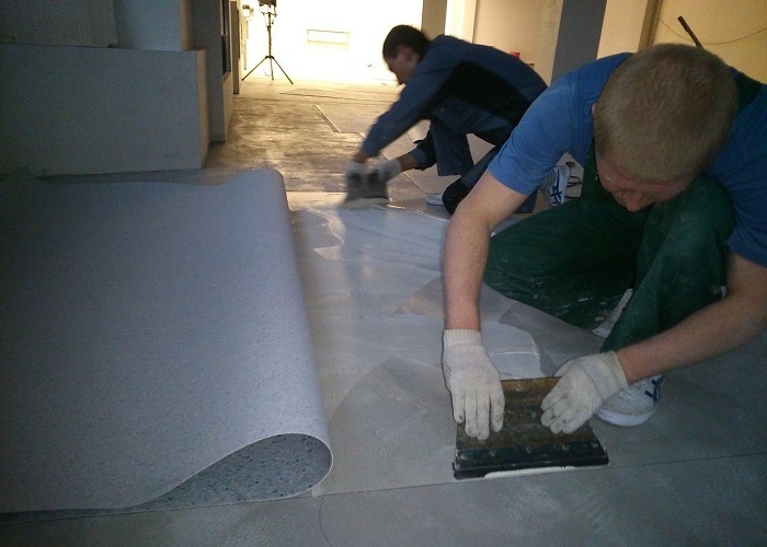 All dies macht die Klebstoffinstallation dieser Art von Beschichtung zur bevorzugtesten Option.Es ist jedoch anzumerken, dass diese Methode einen Nachteil hat: Das auf diese Weise installierte Linoleum wird nicht leicht zu demontieren sein.