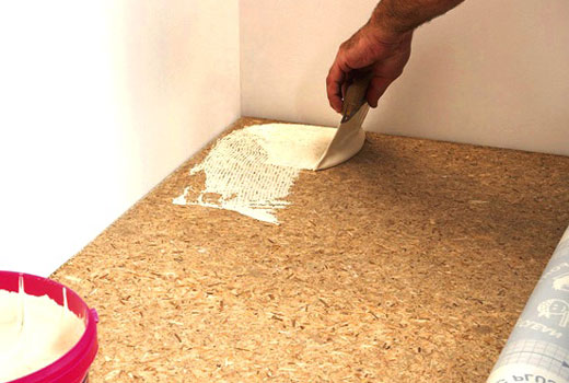 Vor dem Auftragen des Klebstoffes muss die Beschichtung sorgfältig nivelliert werden. Der Boden ist mit einem Spachtel mit Nelken mit Klebstoff bedeckt. Für eine starke Verbindung eines Linoleumtuchs mit einem Boden sollte die Schicht mindestens 0,5 cm lang sein, das sauber aufgelegte Linoleum sollte sorgfältig und gleichmäßig gepresst werden.