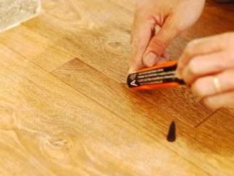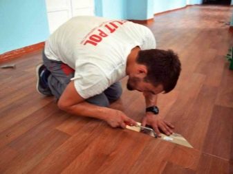 Der Nachteil dieser Methode ist die Unfähigkeit, es auf dem Bodenbelag mit Isolierung oder einer weichen Unterlage zu verwenden. Die Fugen sind ungleichmäßig und ungenau, und die Naht ist für das bloße Auge sichtbar und verdirbt das Aussehen des Bodens.