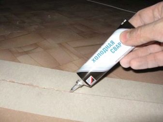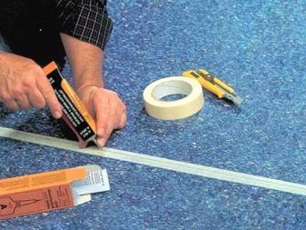 Es gibt mehrere Möglichkeiten, die Verbindungen zu verbinden - es ist heiß und kalt Schweißen. Kalt hilft, den Bodenbelag mit einem speziellen Klebstoff zu verkleben,und heiß - Löten spezielle Ausrüstung. Verwenden Sie auch zusätzliche Methoden, z. B. doppelseitiges Klebeband.