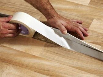 Der einfachste, aber unzuverlässige Weg. Das liegt daran, dass niemand, selbst das beste Klebeband, für eine Langzeitbelastung ausgelegt ist und seine Haftfähigkeit im Laufe der Zeit schwächer wird. Um es zu kleben, passen Sie nur einen flachen Boden ohne Beulen an. Aus diesem Grund ist es besser, die gesamte Oberfläche vor der Verarbeitung mit einer speziellen verstärkenden Grundierung zu grundieren.