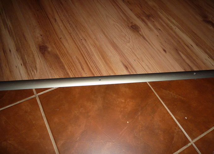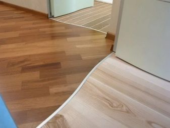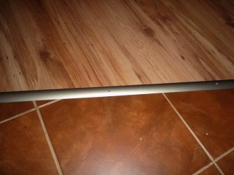 Die Methode wird verwendet, wenn man von einem Raum in einen anderen geht (zum Beispiel zwischen einem Korridor und einer Küche). Das Fixieren von Materialien über Linoleum ermöglicht es, zwei Teile zu verschließen und die Nähte abzudichten. Metallschwellen verbinden zwei Materialien unterschiedlicher Struktur. Der Bereich der Schwellenwerte ist nicht zu umfangreich, aber Sie können eine geeignete Farboption finden. Dies ist ein einfaches Andocken, das keine besonderen Kenntnisse und Fähigkeiten erfordert und daher am häufigsten ist.