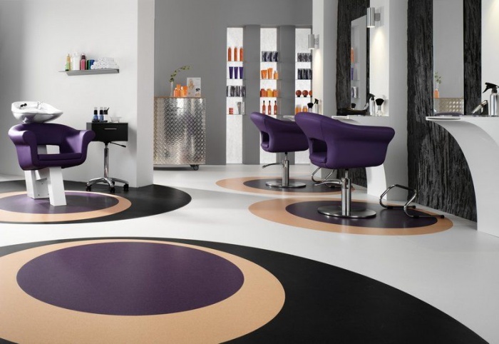 Kommerzielle Linoleum - Beschichtung speziell für Orte mit hohem Personenfluss. Es ist abriebfest und wird in Schulen, Krankenhäusern, Büros, Fluren, Cafés, Einkaufszentren und anderen ähnlichen Orten verwendet.