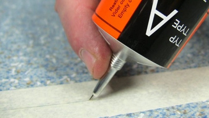 - Typ "C" ist auf die alte Beschichtung fokussiert. Hier ist der Kleber viel dicker, die Textur ist ähnlich wie Gelee. Dies bestimmt seine Fähigkeit, große Lücken zu füllen. Bei der Reparatur der alten Beschichtung, Risse, solche Nähte werden nicht schmutzig. Die fertigen Nähte werden mit einer Breite von etwa 4 mm erhalten;