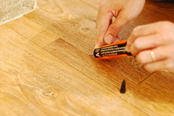 - Nach 15 Minuten wird das Band glatt entfernt. Nach 2 Stunden können Sie sicher auf dem Boden laufen.