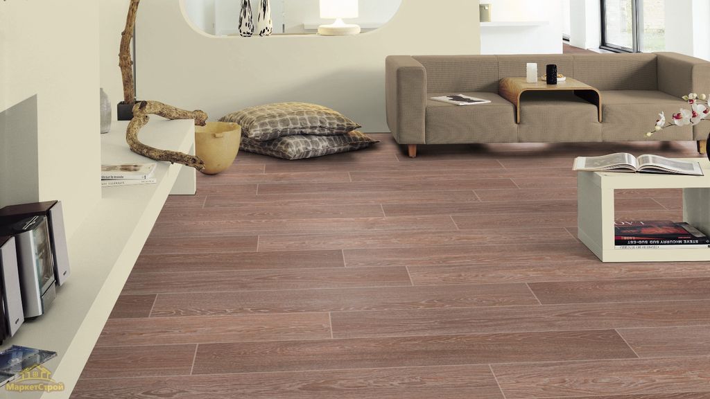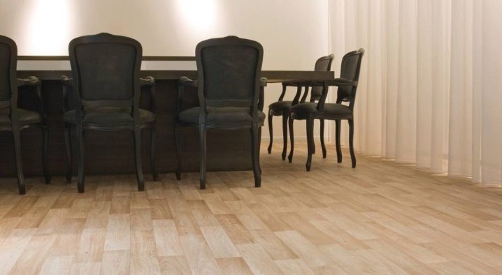 Es kann auf einer ebenen Fläche oder auf einem alten Boden verlegt werden, wenn es ohne Verschiebung liegt.An den Fugen ist der Schutz vor Wasser, die Verwendung von Sockelleisten erforderlich. Negative Eigenschaften umfassen eine relativ kurze Lebensdauer und hohe Kosten.