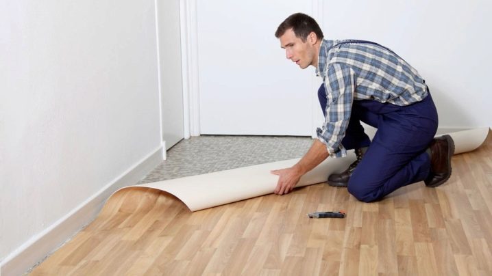 Vor dem Kauf des Materials wird die Fläche der Wohnung vermessen und aus dieser Figur wird das benötigte Material der Rolle berechnet. Docknähte beginnen nach dem Boden. Es ist möglich, Teppiche zu verlegen oder den Übergang zwischen Räumen zu markieren.