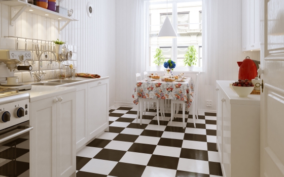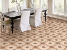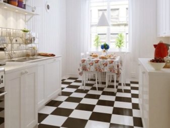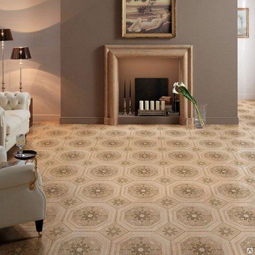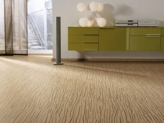 Bei der Planung des Innenbodens kann das Design eine entscheidende Rolle spielen, aber mit Hilfe kleiner Tricks können Sie sowohl visuell als auch finanziell gewinnen. Zum Beispiel, wenn Sie eine Studio-Wohnung planen, können Sie verschiedene Arten von Linoleum verlegen - der Küchenraum kann durch ein Fliesenmuster, das Esszimmer - durch ein Muster in Form eines Holzbodens unterschieden werden; Der Boden im Gästebereich kann mit einfarbigem oder marmoriertem Linoleum belegt werden, und das Schlafzimmer kann mit einem Parkettmuster abgetrennt werden.