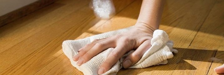 Die letzte Stufe der Oberflächenvorbereitung ist das Spülen von Reinigungsmittel mit klarem Wasser. Wechsel des Wassers ist 3 mal. Zuerst wird ein Lappen mit fließendem Wasser im fließenden Wasser gewaschen, es passiert zum ersten Mal den gesamten Boden. Dann der zweite Wechsel von Wasser und Lappen, nach dem dritten Wechsel von Wasser (Lappen kann gleich gelassen werden). Nach dem Waschen sollte der Boden vollständig trocknen. Stellen Sie sicher, dass niemand darüber hinweggeht und keine Spuren hinterlässt.