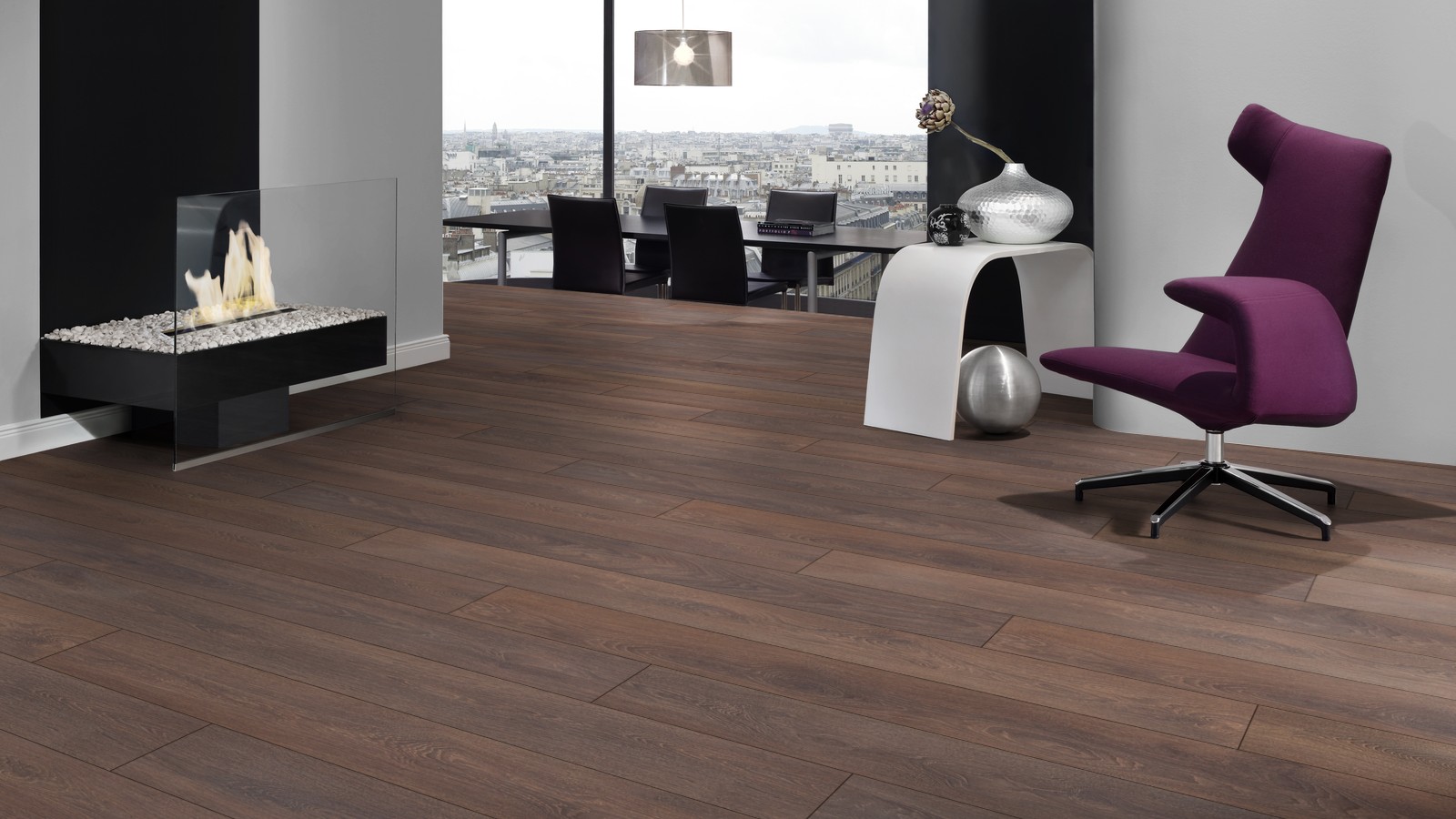 Asche muss sofort entfernt werden, Funken dürfen nicht auf die Oberfläche auftreffen. Linoleum ist besser als Laminat, weil die Nassreinigung ihm keinen Schaden zufügt und täglich sein kann.