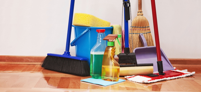 - Linoleum wird regelmäßig mit einem feuchten Tuch abgerieben;
