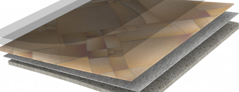 - die Dicke der Schutzschicht (Oberseite aus Polyurethan) im Bereich von 0,3 bis 0,6 mm;