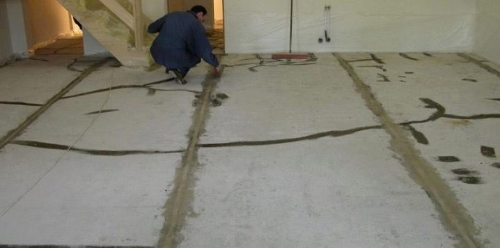 Das Prinzip eines jeden Meisters hat sein eigenes. Es gibt jedoch allgemeine Regeln. Die Verlegung erfolgt auf einer trockenen und ebenen Basis. Wenn der Boden Unregelmäßigkeiten, Risse oder Reste von altem Linoleum aufweist, entfernen Sie diese, ebnen Sie die Oberfläche ab.