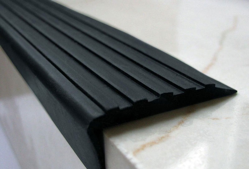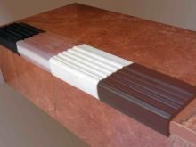 - Ecke (auch Treppe genannt) - diese Sockelleiste hat eine andere eckige Form und dient als Befestigungsmittel zum Verbinden und Sichern von Materialien auf der Treppe. Diese Elemente sind sehr flexibel, da sie aus Gummi bestehen.