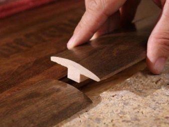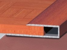 - Funktioniert als dekoratives Element - auch wenn Sie versuchen, einzelne Elemente so weit wie möglich anzudocken, bleibt der Naht- oder Gelenkbereich, der nicht ästhetisch sichtbar ist, sichtbar. Um dies zu vermeiden, müssen Sie den Schwellenwert für Linoleum verwenden.