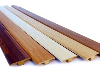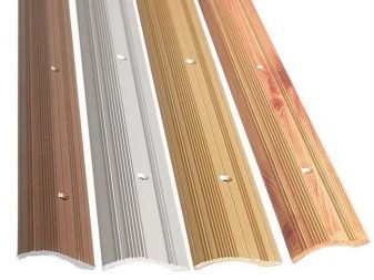 Bei der Herstellung von Metallschwellen können sie in einer Vielzahl von Farben lackiert werden, die eine Bronze-, Silber- oder Goldfarbe kopieren. Die Verwendung von Laminierungstechnologie hilft bei der Herstellung von Sockelleisten, deren Oberfläche der Struktur von Holz, Stein oder anderen Materialien ähnelt.
