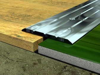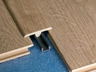 Um die Fugen zwischen Laminat und Linoleum zu verdecken, ist es notwendig, die Schwelle richtig zu installieren. Die populärste Methode der Installation ist Befestigungsmittel für Dübel. In diesem Fall wird ein dekorativer Sockel mit einem Aluminiumstreifen verwendet. Diese Halterung wird versteckt genannt, weil die Dübel unter der Abdeckplatte verborgen sind und die ästhetische Erscheinung des Bodenbelags nicht beeinträchtigen.