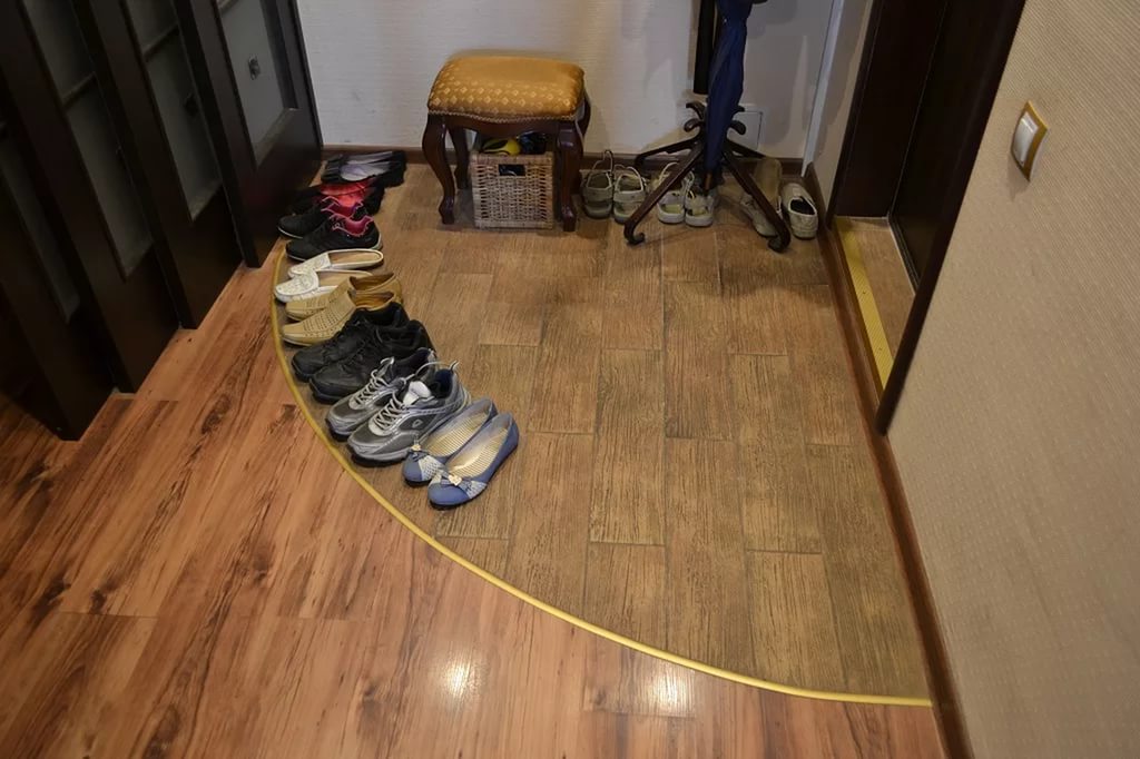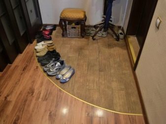 Nicht weniger beliebt ist die Kombination von Linoleum mit Laminat oder Parkett. Wenn Sie eine solche Kombination im Flur verwenden, wird es praktisch sein. Wenn Sie einen Linoleumeinsatz in der Nähe der Schwelle anbringen, werden Sie Ihr Laminat oder Parkett davor bewahren, nass zu werden, was bei Regen- oder Schneewetter relevant wird.