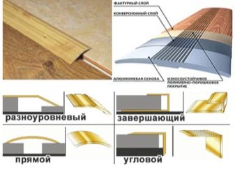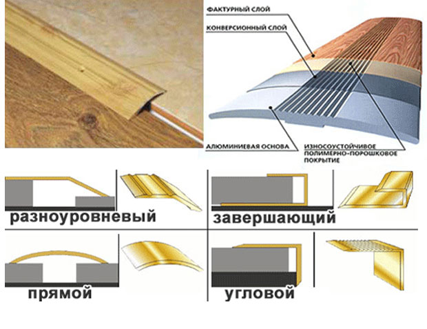 - Finishing - gestapelt an der Stelle, wo das Linoleum endete, und Andocken mit einer anderen Beschichtung wird nicht ausgeführt. Meistens werden diese Pulver in Türöffnungen verwendet.